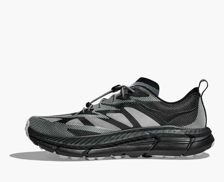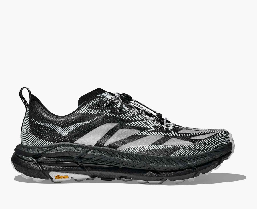 Translucent ripstop upperHaptic dot-matrix printReflective speed laceReflective detailsIridescent heel and tongue logosMafate Speed 4 midsoleFleck outsoleVibram Megagrip
