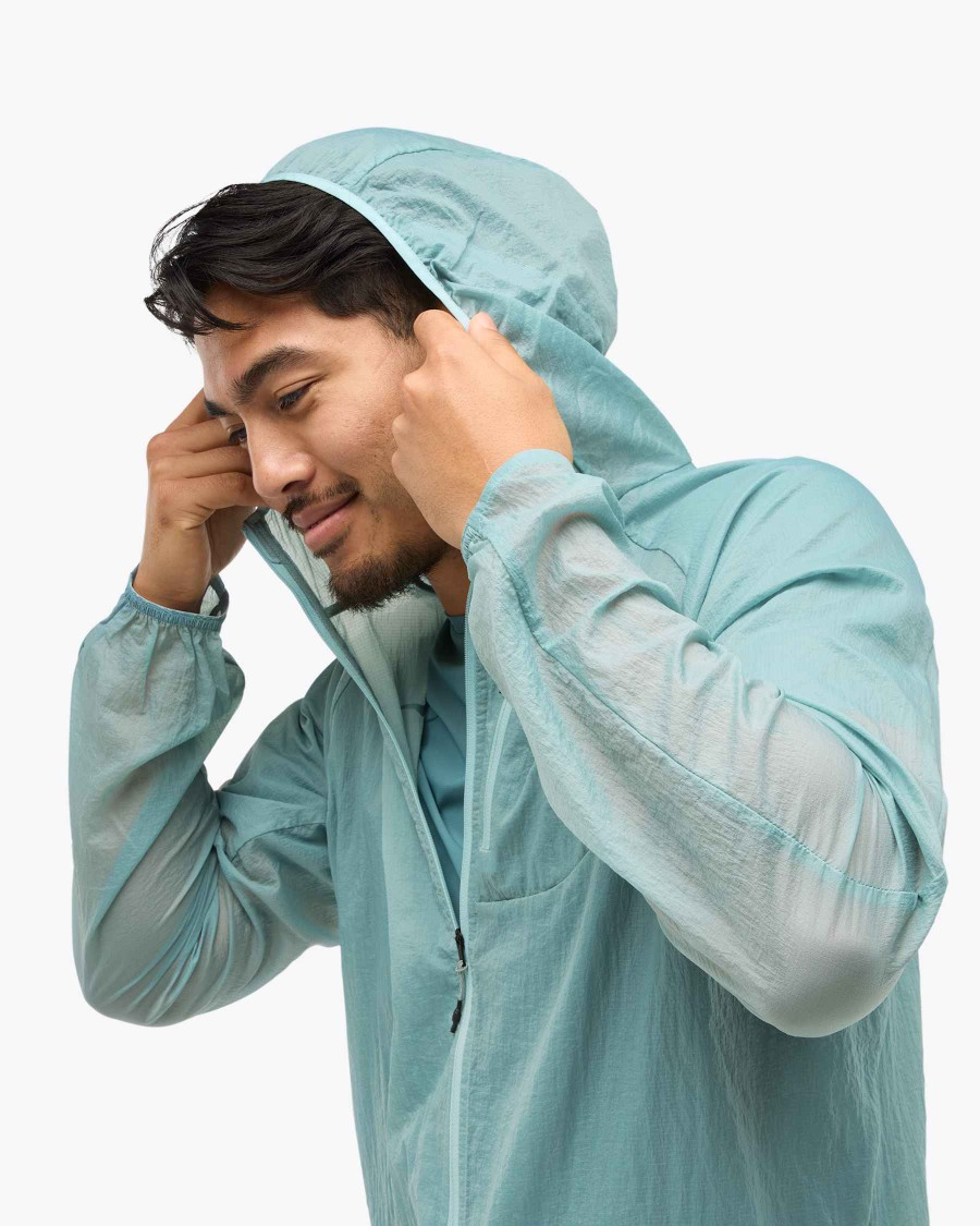 Ultra-light ripstop material with water repellency treatmentZipped, secured chest pocket for storagePacks into chest pocket1-point adjustable hoodRN 88276