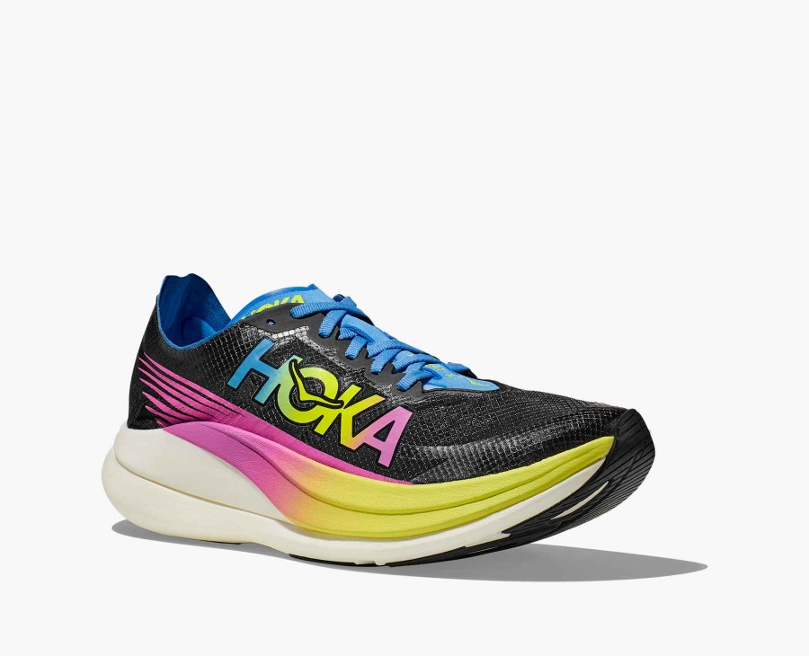 Technical synthetic mesh upperGusseted tongueProFlyX™ constructionHighly-resilient PEBA foamCarbon fiber plateZonal rubber placementEarly stage MetaRocker™Inher